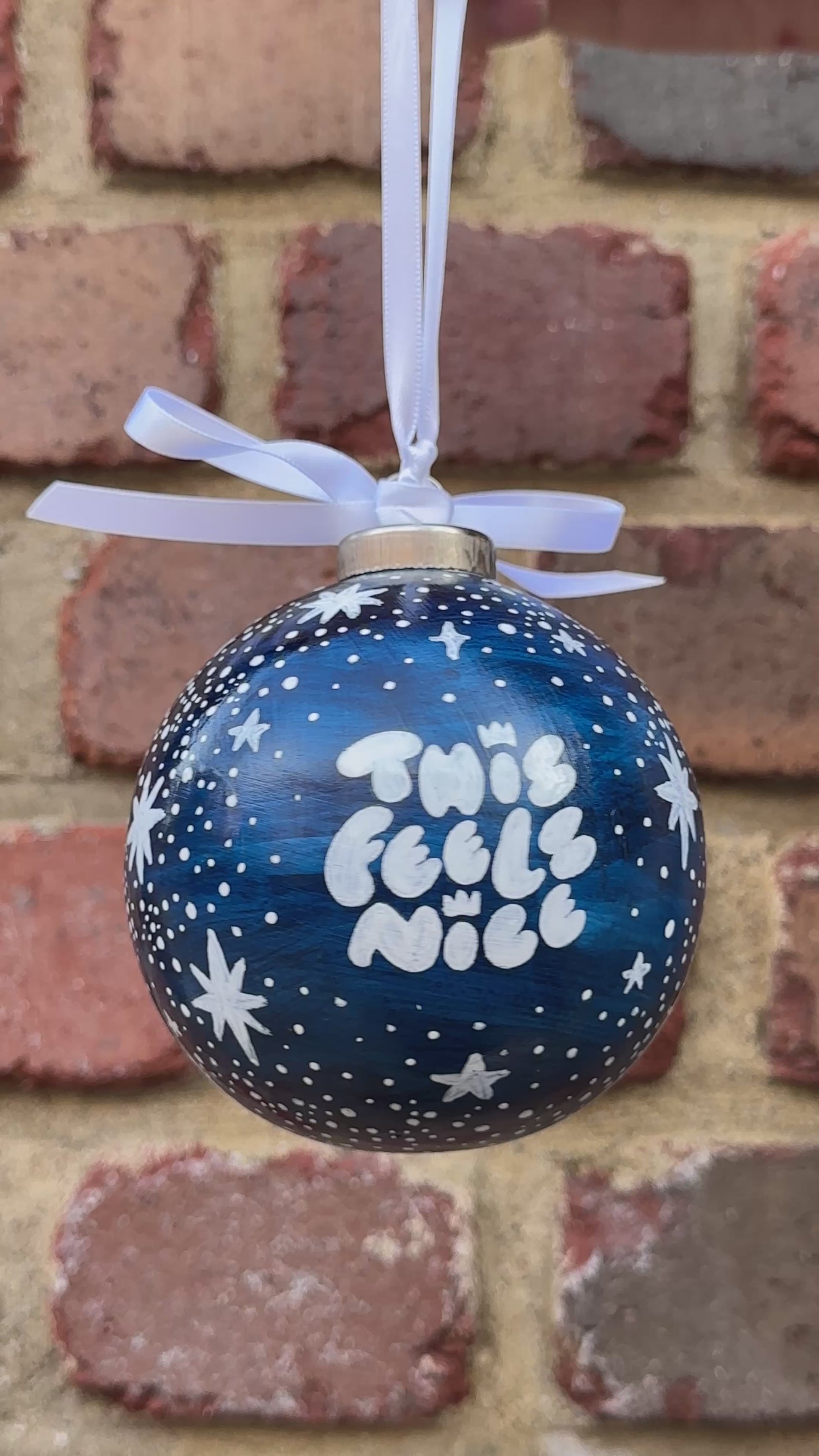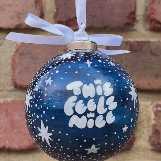 Celebrate the season with the exclusive limited-edition hand-painted ceramic bisque ornament from This Feels Nice. Each piece is carefully crafted and painted by Bridgette Zou, featuring This Feels Nice's signature blue and white design.